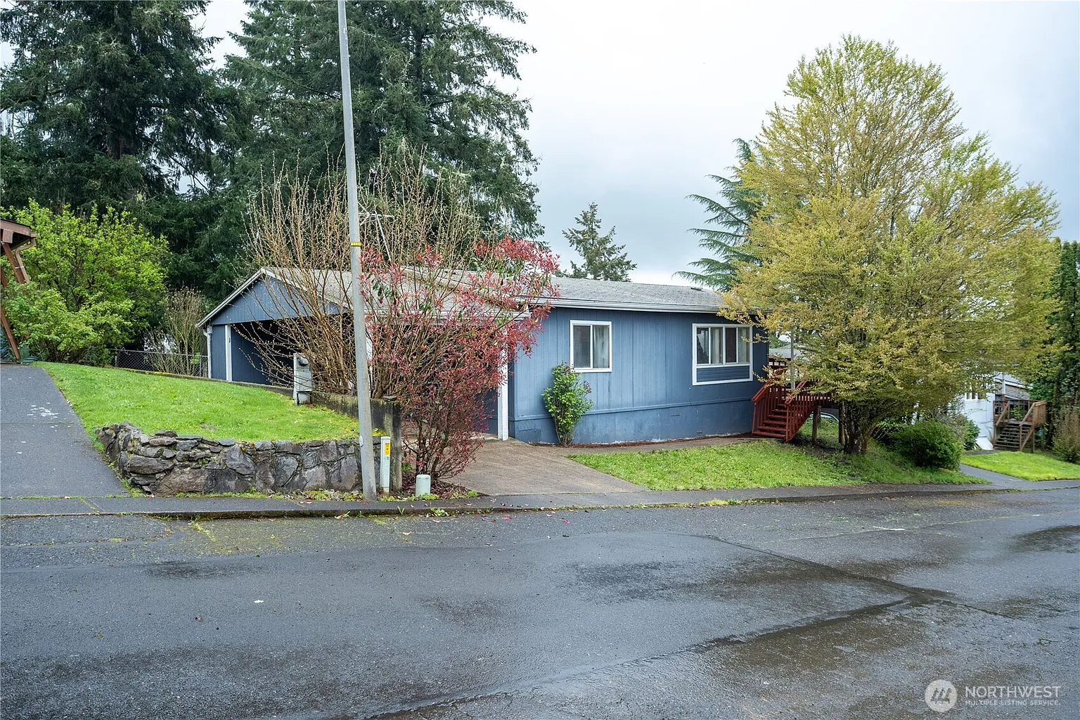 Adorable home in a quiet family park, and best of all, YOU OWN THE LAND! Walking distance to downtown La Center. An open floorplan with a great layout and 2 bedrooms, 1 bathroom. Easy maintenance laminate floors. Fenced backyard! No space rent in this community. If needed, there is RV parking space available for $10 per month and the $100 monthly HOA dues include water, recreation facility and common areas/parks.