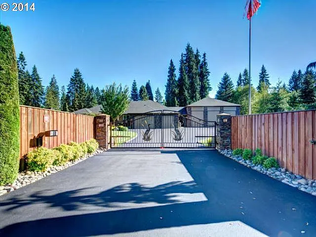 Gorgeous custom ranch home with gated 1.66 level acres. Travertine floors in hallways, entry, bathrooms and kitchen. Den with Alder built-ins and french doors. Gourmet kitchen with custom Alder cabinets, granite countertops and wetbar with wine storage. Greatroom with gas fireplace and built-in floor to ceiling entertainment unit. 10 ft ceilings, 8 ft solid doors, central vacuum system, intercom and security systems. Master bedroom with walk-in closet, jetted tub, tile shower, gas fireplace and slider to back patio. Guest suite with separate entrance. Outdoor propane fireplace in fenced landscaped backyard, stamped concrete covered patio and breezeway to the shop, paver walkways and 2 water features. Home has a private well house, water softener and septic. 50 x 50 heated shop with a full bath, 14 ft doors, 18 foot ceilings, bonus room, 2 storage rooms and stained concrete floors. 11,000 sq ft of pavement.