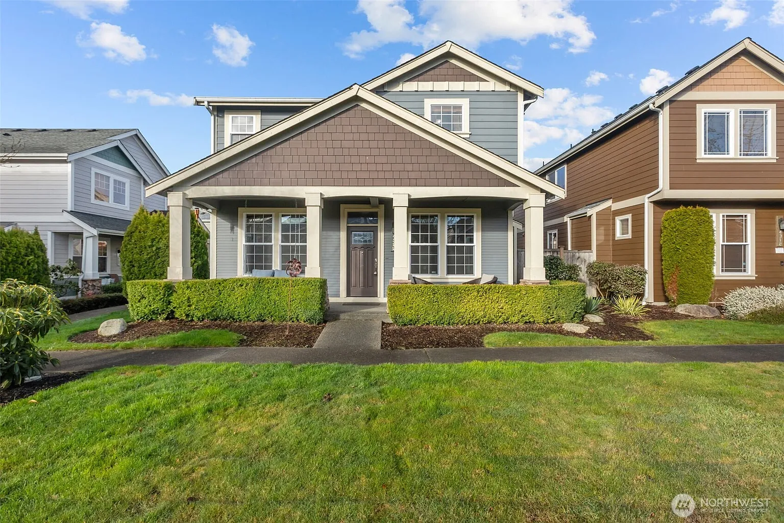 Welcome to The Villages at South Hill! This vibrant community offers exceptional amenities including an athletic court, playgrounds, and a dog park — perfect for an active lifestyle. Enjoy effortless outdoor living with a spacious covered front porch and a private side patio, ideal for relaxing with a morning cup of coffee. Even better, landscaping is maintained by the HOA, giving you more time to enjoy your home and community. Inside, the main living area features central A/C, gorgeous engineered hardwood flooring and a bright open-concept design. The kitchen shines with stainless steel appliances, granite countertops, and seamless flow into the living and dining spaces. Upstairs, retreat to the generous primary suite with a full bath, large walk in closet along with a convenient laundry room complete with cabinets and a utility sink. A large bonus area provides flexible living space, plus two additional bedrooms offer comfort and versatility. This is the perfect blend of low-maintenance living, modern updates, and sought-after community amenities — don’t miss it!