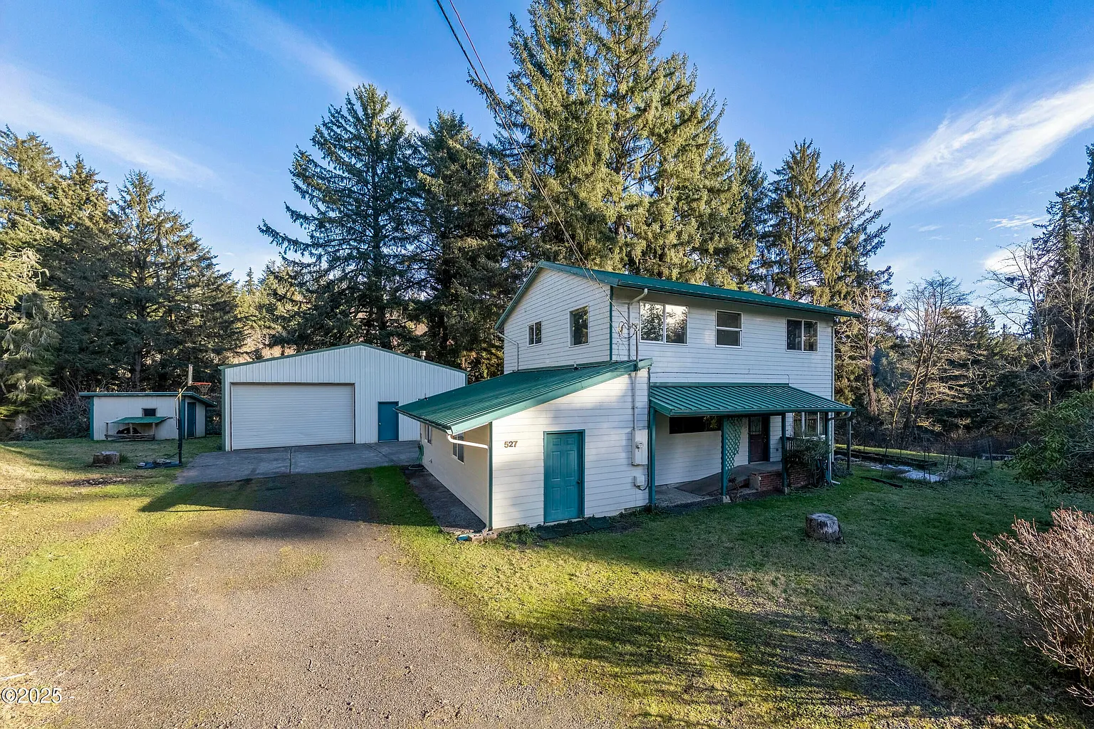 The best of both worlds! Private wooded country setting on over 3/4 acre of land, yet only 2.5 miles from town and city amenities. Spacious 1,980 SF floorpan features main level living with a bedroom and bathroom on the main level and 2 additional bedrooms, bonus room, and bath upstairs. Plenty of room for toys and projects with an attached garage + large detached 36' x 36' shop.Low maintenance exterior featuring cement fiber siding and vinyl windows. Lots of room for gardening, and just far enough east of the ocean to be outside of the fog belt.