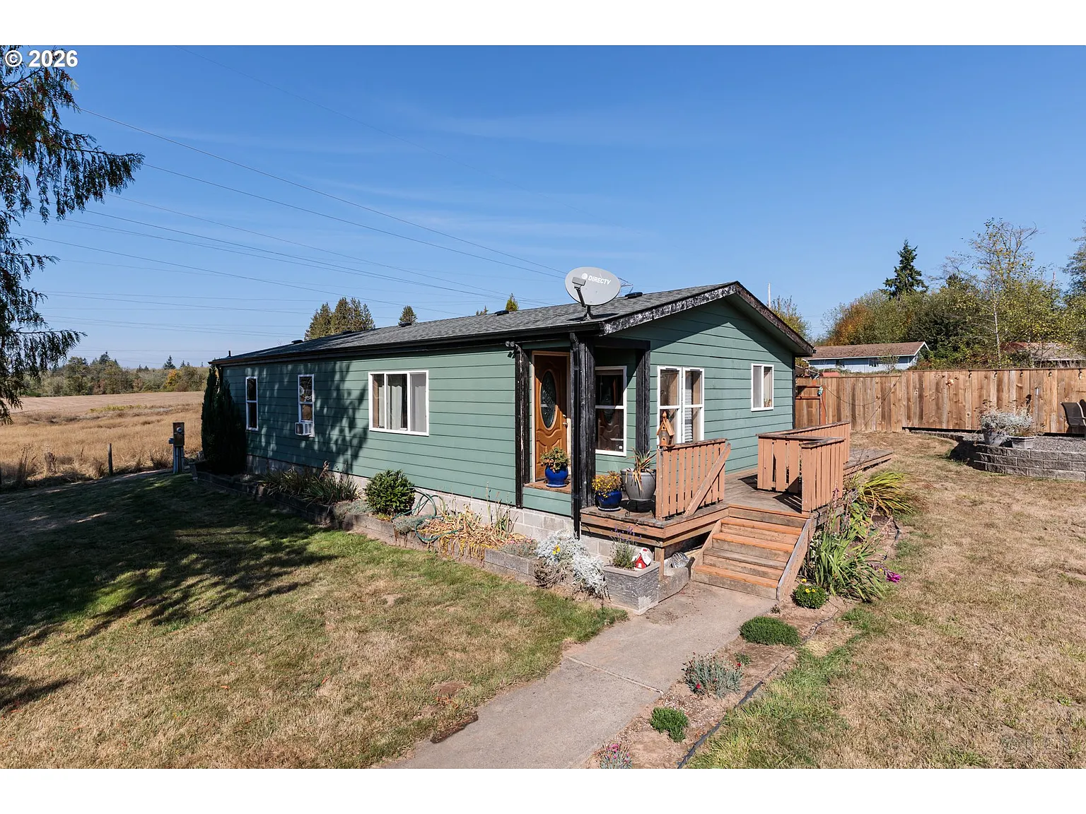 Adorable 2 bedroom, 2 bathroom manufactured home on 8 acres. Enjoy evening on the back deck BBQing with friends and family. Open floor plan lends to easy of living. Primary suite with vaulted ceilings. Room for shop, animals and more. Property extends beyond the fence line and is divided by the highway. Detached garage/shop perfect for all the extras you need space for. Quick and easy access to Highway 30 for commuting. Come see what this wonderful property is all about.