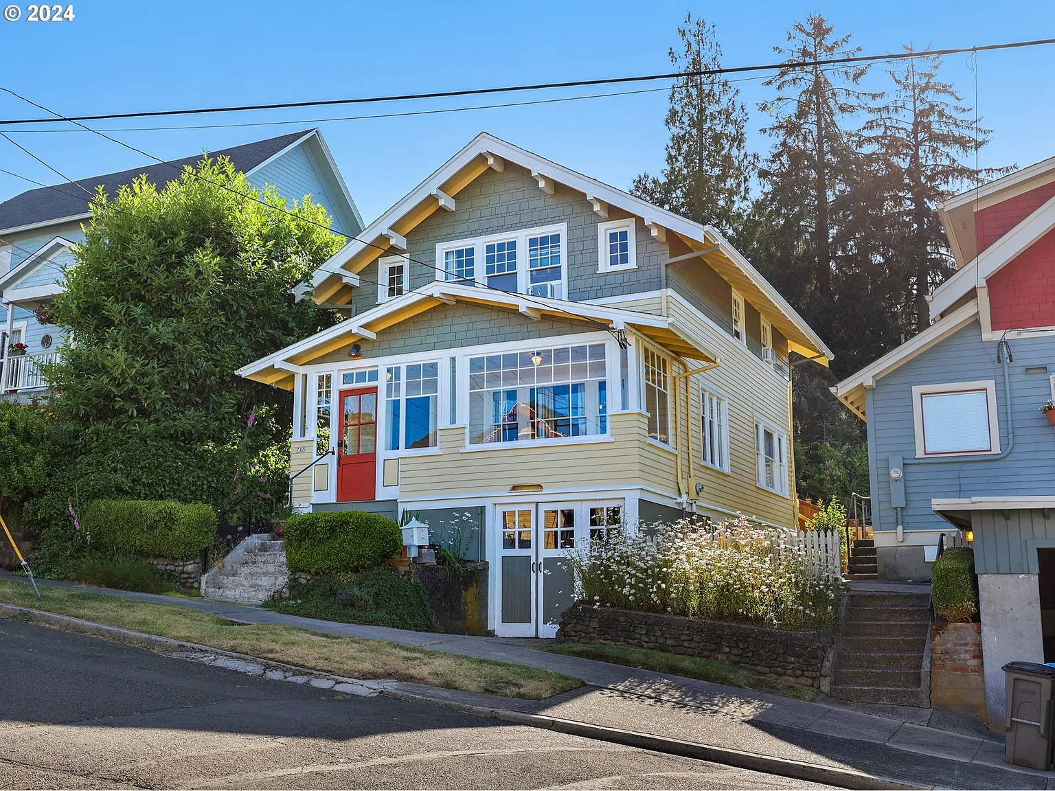 This 3+ bedroom, 1.5 bathroom Craftsman has it all! Columbia River views, original wood floors and that historic Astoria charm, new exterior/interior paint and deck stain, rebuilt front concrete steps and more! The main floor features the kitchen, formal living and dining rooms with original built ins, plus an oversized studio/office off the rear of the home with en suite 1/2 bath and private entrance. Electrical upgrades include dedicated 20 amp outlets in each bedroom, electric vehicle charger next to driveway and new outlets throughout the interior and exterior of the home. The .04 acre lot with mature landscaping in the front and fenced back deck is perfect for someone looking for a low maintenance yard!
