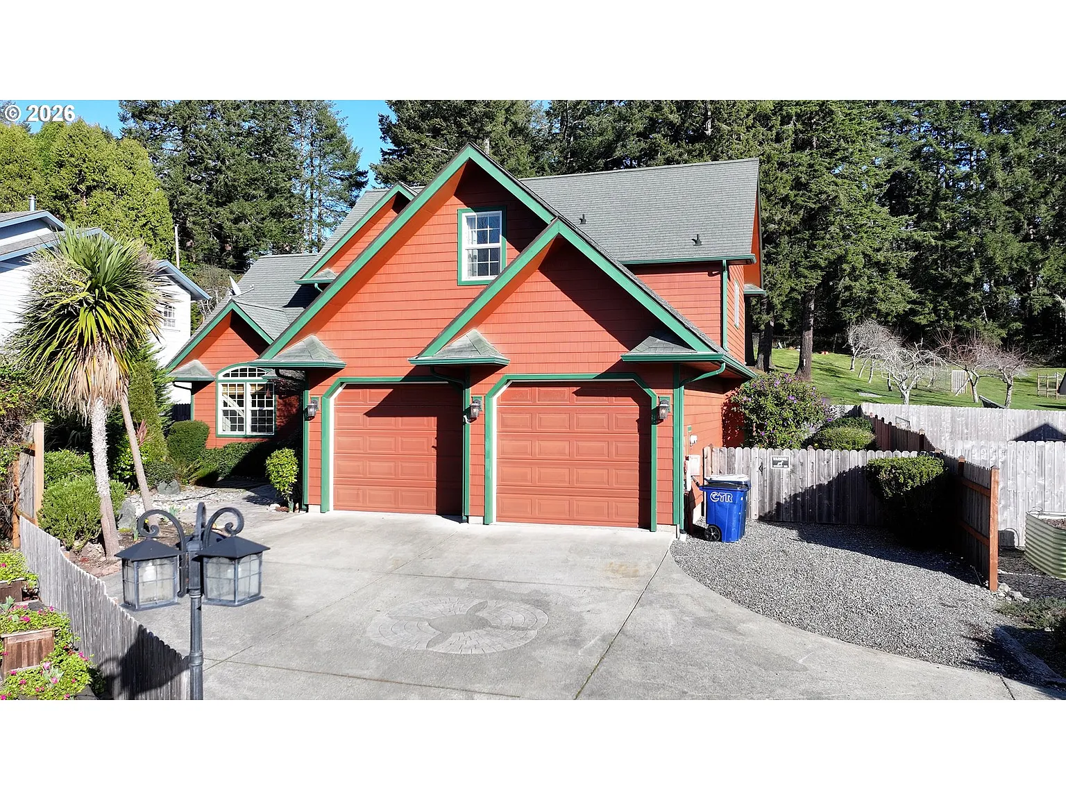 Beautifully designed and immaculately maintained spacious 3287 sq ft custom home in an exceptional neighborhood, approximately five minutes from Harris Beach. Soaring ceilings and true craftsman quality set the tone from the moment you walk in. Acacia hardwood floors, Red Oak hardwood floors, Brazilian slate floors in the living room, and rich mahogany exterior doors, beautiful etched glass front door features a lighthouse, the design ads a coastal touch. The spacious kitchen features custom hickory cabinetry, stainless steel appliances, Corian Countertops, a pantry and room to gather with ease. The main level offers a generous private primary suite with en suite bath with a huge walk in closet. Upstairs you will find two additional bedrooms, two spacious loft areas, and a full bath, offering flexibility for guests or hobbies. Step outside to a private, tranquil yard with professional landscaping, a peaceful water feature, and a Trex deck designed for effortless outdoor living. 50 year roof. The laundry room features custom cabinetry, a sink, built ins and a washer and dryer. This is the kind of home and location that rarely come available. Beautiful home. Beautiful area. There is also a beautiful family room/office/den combo. Ask to see the 3D tour!