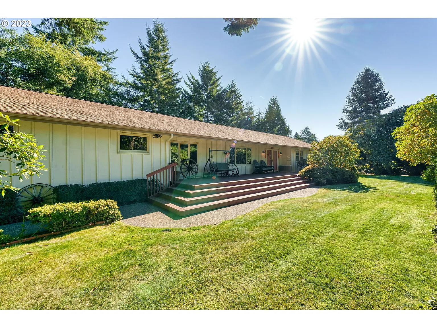 Introducing a ranch-style gem nestled on a vast 2+ acre expanse, perfectly poised between in-town convenience and natural allure. The captivating Harris Beach State Park just a short drive away. This home offers the best of both worlds! Garage & Premium Storage: Benefit from an attached 2-car garage along with a substantial detached RV/Boat storage space with 14' doors. RV enthusiasts will particularly value the electric hook-up feature. Guest Comforts: The meticulously designed lower-level guest quarters comprise a separate bedroom, living space, bathroom, and a handy kitchenette, ensuring utmost privacy for your guests. Versatile Spaces: The office space and recreational room, equipped with a pool table, promise countless hours of fun and productivity. If movies are more your speed, easily transform the space into your very own theater room. Plus, there's a generous storage area to keep things organized. Outdoor Haven: Bask in the serenity of the beautifully landscaped grounds. Follow the tranquil, park-like walking path, or ascend to the viewing deck to soak in distant ocean vistas and sunsets. Entertainer's Dream: The sprawling deck is perfect for grand family & friends' barbecues, or simply lounging with a book on sunny afternoons. Modern Conveniences: Rest easy knowing the home is serviced by city electric and sewer. Comprehensive Living: Offering 4 spacious bedrooms and 3 1/2 bathrooms. This home can comfortably accommodate both family and guests. Why Choose This Home? Beyond its tangible features, this property promises a life of unparalleled comfort, connection, and celebration. It's not merely a home...it's an experience, a retreat, an entertainer's paradise. Act now, for properties like this are few and far between!