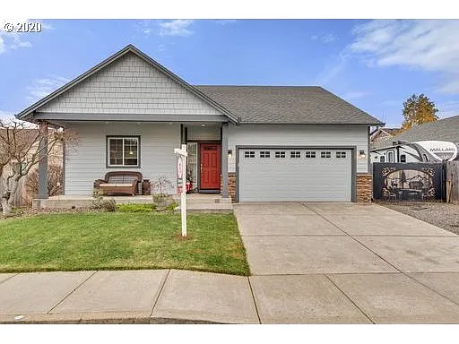 Beautiful 3 bedroom and 2 bathroom ranch features an open great room & fenced backyard. 2 bedrooms have built-in desks while the master includes a walk-in closet, bathroom & access to the backyard. The large front porch & welcoming wide entry greet you as you enter the home. An island, SS appliances & bar nook are included in the ample kitchen. Warm up by the propane stove in the living room. Enjoy the back patio (perfect for BBQs) & flat backyard that has RV/boat parking/storage. Don't miss it!