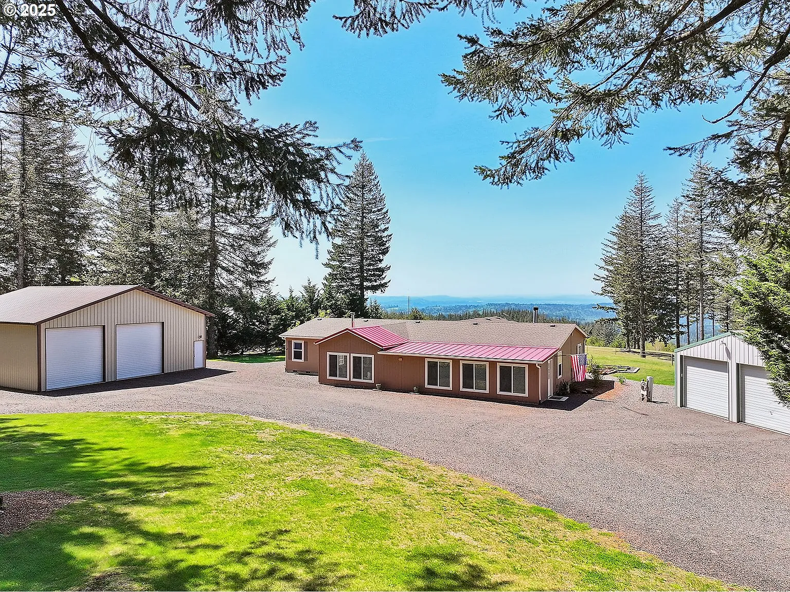 Meticulously maintained 2002 manufactured home on 2.11ac of gently sloping and fenced land. This property comes with two large, detached shops. The 40x40 shop built in 2016 has 250amp service and extra tall doors. The 24x30 shop built in 2001 is also powered and contains the well's expansion tank. The well is only 105ft deep and reported 15GPM back in 2000. There's a large wrap around driveway making parking in either shop a breeze. Around the front, there is a hot tub where you can enjoy massive views of downtown Portland & Silver Star Mtn. Or connect with the land through an already established garden, which includes 13 blueberries bushes and raised garden beds. As you step into the front of the home, you come through a 520sq/ft covered mud room that was added in 2023. Finish it out with power, insulation, and drywall for more interior space (great for pets). Inside, there are vaulted ceilings, one fireplace, one wood stove, 3 bedrooms, and 2 full bathrooms. With a large enough driveway, you can store your existing toys, tools, RVs, boats, etc. Or better yet, go buy the ones you've been wanting. Here is your opportunity for a turnkey ready rural lifestyle.