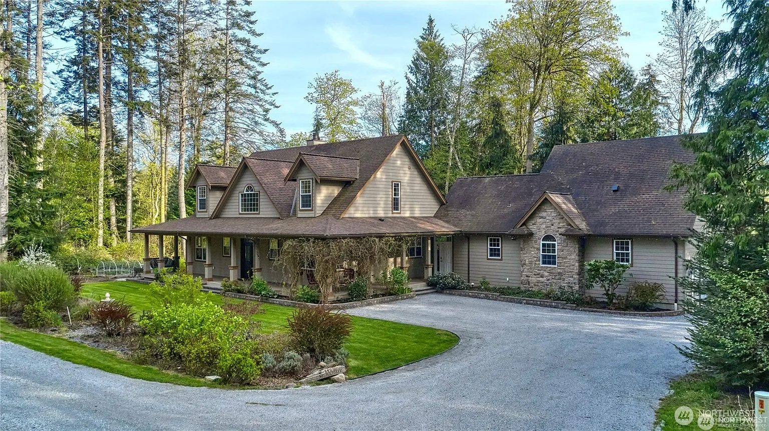 Beautiful custom Cape Cod two-story home at the end of a secluded street. Nearly 3,000 sq ft of living space plus 800+ sq ft fully developed bonus room. Features include 9-ft ceilings, cathedral living room with built-in entertainment center and wood-burning fireplace. Chef’s kitchen with maple cabinetry, granite counters, Wolf appliances, Sub-Zero fridge. In-floor heating on main level and garage, central vac. All bedrooms have ensuites. Factory finished Hardie plank siding, stone accent, covered decks, RV hook-up and dump station. Built on lots 7 & 8 (0.4 acres). Sale includes adjacent wooded lot 9. This home was designed by renowned architect Donald Gardner and built on site. An absolute must see.