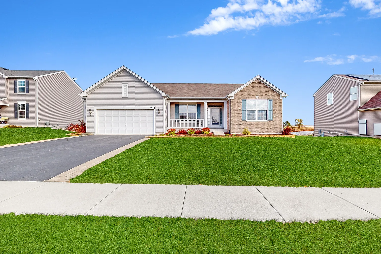 Absolutely immaculate ranch boasting premium lot with pond views! Large composite deck for breathtaking sunsets and gatherings. Huge kitchen lends itself well for entertaining and those coming holiday celebrations with adjacent large dining area. Dining room on front side of home could be used as a living room or formal dining room. Massive master suite has separate walk in closets so couples can each have their own storage space! Bring your ideas to finish the lookout basement and double your living space! Already comes with rough plumbing for potential 3rd bathroom and also has a high efficiency furnace and whole house humidifier. New battery back up sump pump, new landscaping and new carpet in bedrooms and dining area. Move in ready, won't last long!! SSA is included in the tax bill.