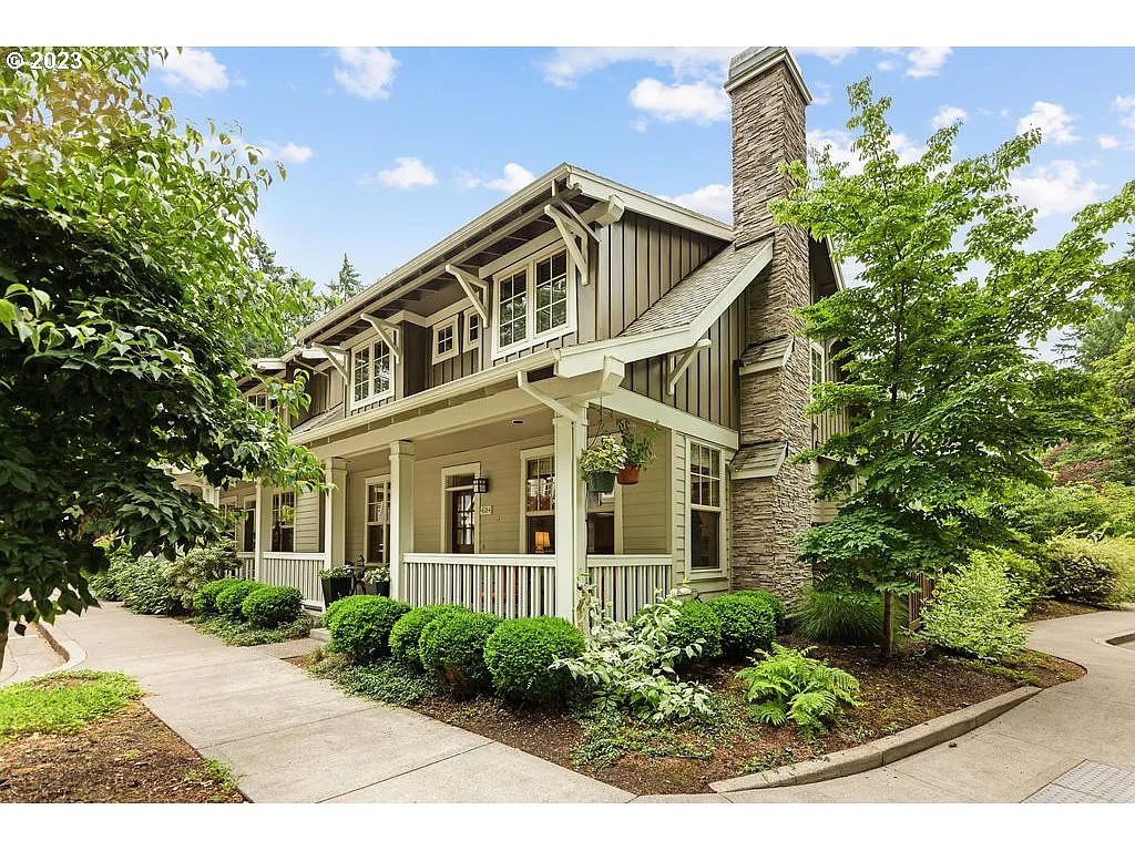 Stunning Craftsman Townhome in lovely Lake Grove neighborhood! Rare end unit is sunny and bright with windows on three sides. Luxury finishes throughout. Open concept living/dining and kitchen plus a separate den/office on the main level. New Oven/Microwave in Kitchen. New luxury top down/bottom up window coverings in Living and Dining. Freshly painted inside. Enjoy beautiful custom touches including hardwood floors, stainless steel appliances, indoor/outdoor speaker system, and a private partially covered back patio with drip system and lighting. Oversized Primary Suite on upper includes an Study Nook, gorgeous bathroom, and generous closets. 2 good sized bedrooms, hall bath and large laundry room complete the upper level. 2 car garage with built-ins for extra storage. Just a short walk from parks, coffee shops, restaurants, and 2 grocery stores. Walk Score 75. Enjoy award winning Lake Oswego Schools and Lake Grove Swim Park! Easy access to I-5 and 217.