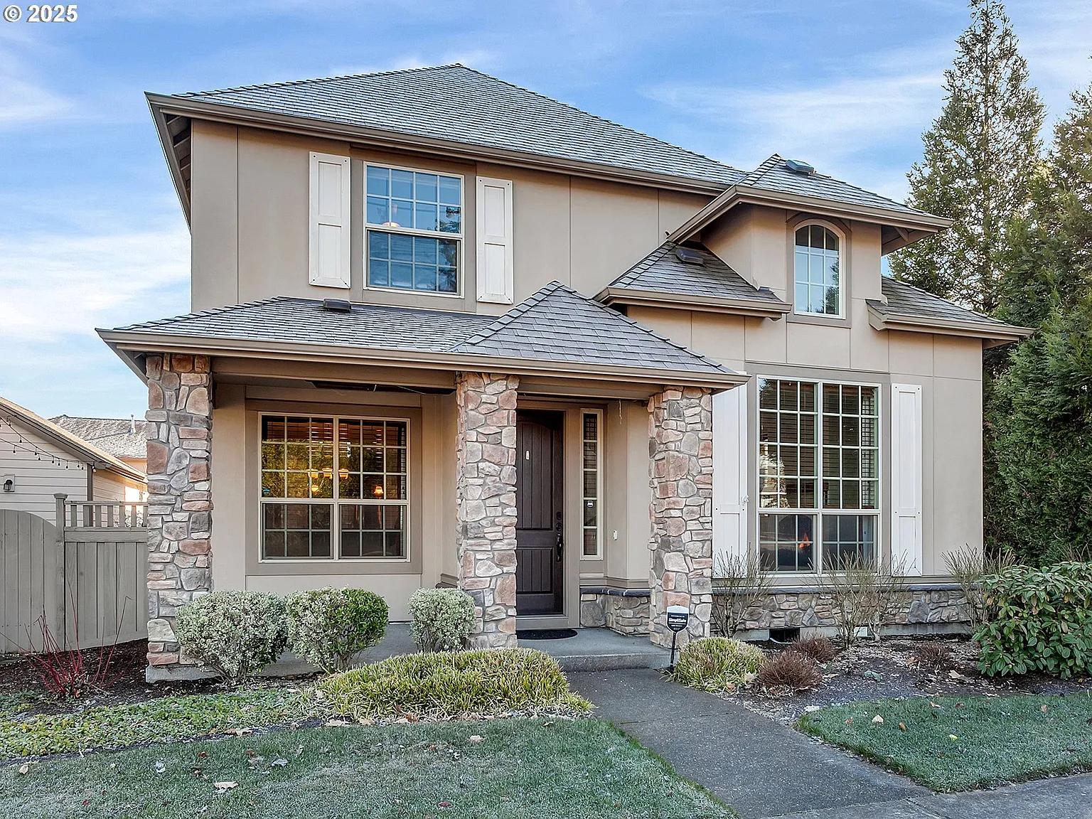 Nestled on a premium south-facing corner lot, this fabulous Legend home offers timeless Tuscan charm, abundant natural light, and exceptional outdoor space. Located in the heart of Villebois, this three-bedroom, two-and-a-half-bathroom home is thoughtfully designed to maximize both comfort and function, making it ideal for those who love to entertain, garden, or simply relax in a bright and inviting setting. Step inside and experience the open-concept main level, where soaring ceilings and walls of windows fill the home with natural light year-round. Gorgeous engineered hardwood floors flow throughout the space, complementing the chef’s kitchen, which features slab granite countertops, stainless steel appliances, a gas range, and an oversized peninsula with seating for six—perfect for casual gatherings. The main-level den is a versatile space that functions beautifully as a private home office or an elegant library, complete with built-in bookshelves. French doors lead to the expansive and private backyard oasis, a gardener’s dream! The south-facing lot ensures optimal sunlight for raised flower beds, while the charming gazebo offers a perfect spot for morning coffee, al fresco dining, or quiet relaxation. Upstairs, the luxurious primary suite provides a tranquil retreat with a spa-like ensuite bathroom, featuring a soaking tub, walk-in shower, and double vanity. Two additional bedrooms offer ample space, while the abundance of windows throughout the home ensures a light and bright atmosphere in every season. Located just steps from top-rated schools, scenic parks, and vibrant Villebois community amenities, this home offers unparalleled access to walking trails, playgrounds, and local dining. With its premium location, sun-filled interior, and beautifully designed outdoor space, this home is a rare gem.