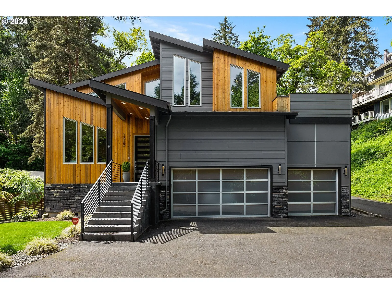 Enjoy living in luxury in one of the most desirable Lake Oswego neighborhoods. This home boasts entertainment spaces including multiple decks, a chef's kitchen with an open floor plan, and a large bonus room featuring a wet bar, gas fireplace, and deck. Cooking is a dream with the gourmet kitchen with a Wolf double oven range, subzero refrigerator, extensive counter space, and island. The open-concept living room features a gas fireplace, built-in custom cabinets, and a lovely deck with steps down to the backyard. The main level features a bedroom, a bathroom with a step-in shower, a wine storage room, and a laundry room. Walk upstairs to the second level with a gorgeous primary bedroom with an ensuite bath, a soaking tub, an additional vanity/dressing counter, a walk-in shower, and a private deck looking out to the backyard. The large bonus room upstairs offers excellent entertainment space with built-in custom cabinets, a wet bar, a gas fireplace, and another large deck. The thoughtful and high-end finishes throughout make this home's contemporary features shine. You can call this a desirable Lake Oswego neighborhood home.